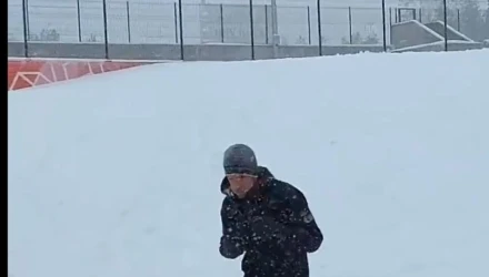 Με τη μουσική υπόκρουση από το Rocky 3 (eye of the tiger) και χιονισμένο σκηνικό από το Rocky 4 ο Σέρβος εμφανίζεται ως άλλος Ρόκι Μπαλμπόα να προπονείται στα χιόνια.
