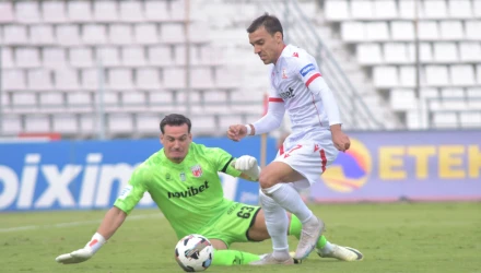 Το πρώτο 45λεπτο κύλησε με λίγες ευκαιρίες μπροστά από τις δύο εστίες, με τους δύο τερματοφύλακες να είναι σε ετοιμότητα, στις φάσεις που χρειάστηκε να επέμβουν.