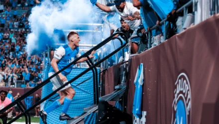 Μόλις είδε την μπάλα να καταλήγει στα δίχτυα, έφυγε τρέχοντας προς την κερκίδα των οπαδών της Σάρλοτ, ανέβηκε τα σκαλιά και πανηγύρισε έξαλλα μαζί τους.