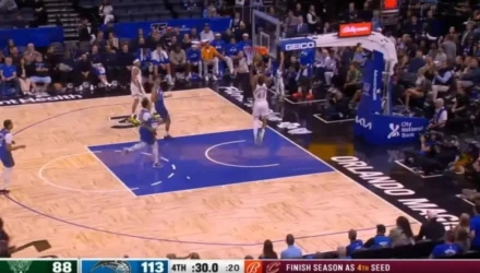 Το τελικό αποτέλεσμα είχε ήδη κριθεί και τον αγώνα να οδεύει προς το τέλος του, οι φιλοξενούμενοι βγήκαν στον αιφνιδιασμό με πρωταγωνιστή τον Θανάση Αντετοκούνμπο. Ωστόσο ο Έλληνας διεθνής παρά την ελευθερία που είχε, αστόχησε στο κάρφωμα που έκανε.