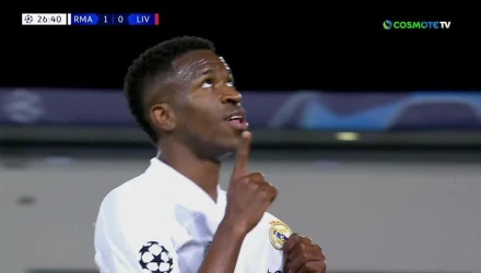 Η Ρεάλ κατάφερε στο 27' να ανοίξει το σκορ εναντίον της Λίβερπουλ. Μια εξαιρετική μπαλιά του Κρος στην πλάτη της άμυνας, ένα εξίσου καλό κοντρόλ από τον Βινίσιους με το στήθος και μετά το σουτ για το 1-0.