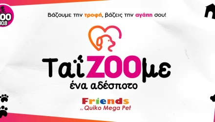 Ο ραδιοφωνικός σταθμός Zoo 90.8, μέσω της πρωτοβουλίας Κοινωνικής Υπευθυνότητας «ταίZOOμε ένα αδέσποτο» και με πολύτιμο σύμμαχο τα καταστήματα Quiko Mega Pet συμβάλλει με έμπρακτο τρόπο στην ανάγκη σίτισης και φροντίδας των αδέσποτων ζώων εν καιρώ πανδημίας και αναλαμβάνει να παρέχει τροφή σε κάθε ακροατή του για να ταΐσει κάποιο αδέσποτο της γειτονιάς του, σκύλο ή γάτα.
