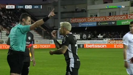 Με δέκα ποδοσφαιριστές συνεχίζει από τον 21ο λεπτό ο ΟΦΗ στην αναμέτρηση με την ΑΕΚ για την 14η αγωνιστική της Super League.