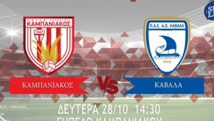 Ο Καμπανιακός υποδέχεται την Καβάλα στις 14.30 στο πλαίσιο της έκτης αγωνιστικής της Super League 2.