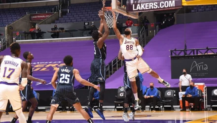 Τα ξημερώματα, συνεχίζοντας να παίζουν χωρίς τον Λεμπρόν Τζειμς και τον Άντονι Ντέιβις, οι Λέικερς νίκησαν δύσκολα τους Μάτζικ με 96-93, με 24 πόντους, πέντε ριμπάουντ και έξι ασίστ του Ντένις Σρούντερ.