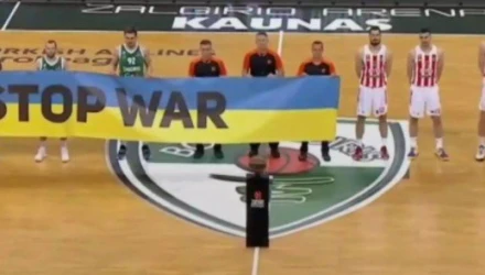 Οι παίκτες της λιθουανικής ομάδας βγήκαν στο παρκέ και κράτησαν ένα πανό με το μήνυμα «Stop the war» («Σταματήστε τον πόλεμο»), όπως συνέβη και στα περισσότερα ματς της διοργάνωσης.
