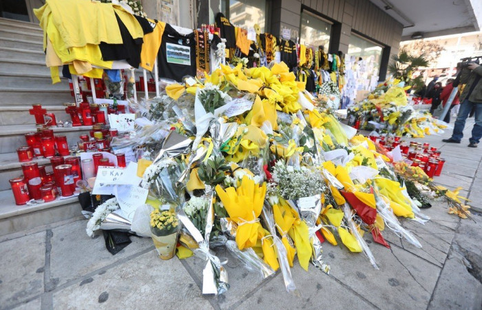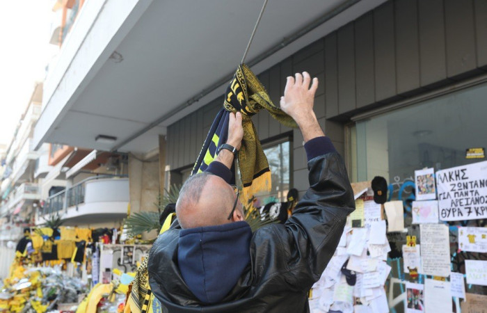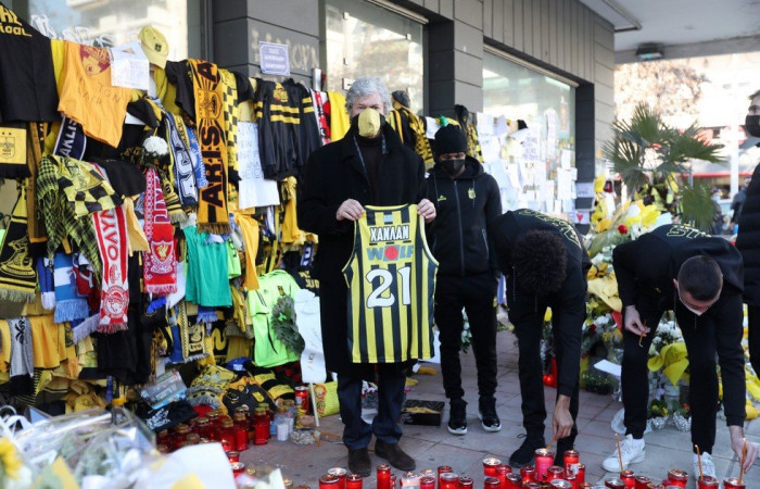 Με τη θλίψη ζωγραφισμένη και ένα «γιατί» αποτυπωμένο στα πρόσωπά τους, τα μέλη του Αρη μετέβησαν στο σημείο όπου τα ξημερώματα της Τρίτης 01/02 δολοφονήθηκε ο Άλκης Καμπανός.