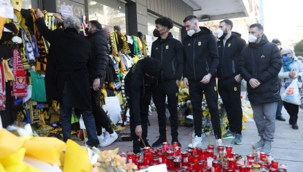 Ο πρόεδρος της ΚΑΕ, κ. Παπαγεωργίου, άφησε στο μνημείο που έχει στηθεί για τον Άλκη μία φανέλα του Ολιβιέ Χάνλαν υπογεγραμμένη από όλη την ομάδα, ενώ ο αρχηγός, Σταύρος Σχίζας, εναπόθεσε μία κιτρινόμαυρη ανθοδέσμη.
