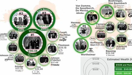Αντίστοιχη πρόοδο είχαν και άλλες δυναστείες. Οι 25 πιο πλούσιες οικογένειες του πλανήτη ελέγχουν περίπου 1,4 τρισεκατομμύρια πλούτου, μια βελτίωση… 24% σε σχέση με τον προηγούμενο έτος.