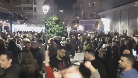 «Από το Βορρά μέχρι το Νότο» τραγούδησαν εκατοντάδες Θεσσαλονικείς στη Βασιλέως Ηρακλείου, όπου συχνάζουν τέτοιες μέρες κάθε χρόνο νέοι και όχι μόνο, τρώγοντας σουβλάκια και πίνοντας κρασί.