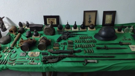 Περίστροφα, τουφέκι, χειροβομβίδες, ξίφη και ανιχνευτής μετάλλων, είναι μερικά μόνο από τα αντικείμενα που βρέθηκαν στην κατοχή του 32χρονου.