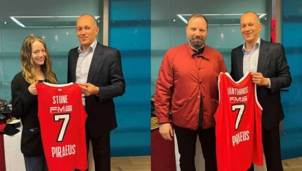 Οι δύο τους συναντήθηκαν με τους ιδιοκτήτες της ΚΑΕ Ολυμπιακός που τους δώρισαν και από μία φανέλα με τα ονόματά τους και τον αριθμό «7».