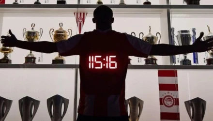 Οι «ερυθρόλευκοι» δημοσίευσαν μια ιδιαίτερη φωτογραφία του 32χρονου φορ μπροστά από την τροπαιοθήκη του συλλόγου, στην οποία δεσπόζει η ένδειξη «115:16». Πρόκειται για το λεπτό στο οποίο ο Ελ Κααμπί σημείωσε το ιστορικό γκολ στον τελικό του Conference League απέναντι στη Φιορεντίνα, χαρίζοντας στον Ολυμπιακό το πρώτο ευρωπαϊκό τρόπαιο της ιστορίας του.
