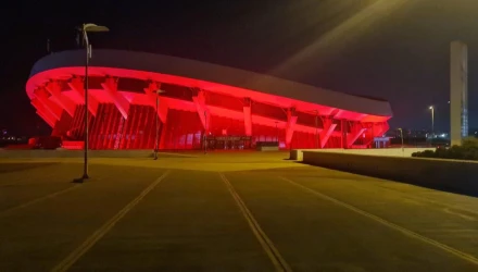 Το Στάδιο Ειρήνης και Φιλίας, η έδρα της μπασκετικής ομάδας, έχει... εορταστική διάθεση, καθώς φωταγωγήθηκε με κόκκινο χρώμα, μία μέρα πριν από τον αγώνα με την Παρτίζαν για τη EuroLeague (7/3, 21:15).