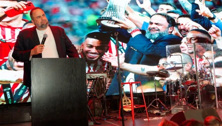 Ο πρόεδρος του Ολυμπιακού τιμήθηκε από τον σύνδεσμο φιλάθλων της ομάδας στη Νέα Υόρκη, ενώ ήταν και το κεντρικό πρόσωπο στην εκδήλωση του Συνδέσου Φιλάθλων Ολυμπιακού Νέας Υόρκης.
