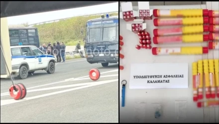 Τα άτομα, μόλις αντιλήφθηκαν αστυνομική παρουσία στα Διόδια Αρφαρών και λίγο πριν διενεργηθεί ο έλεγχος, απέρριψαν στο πρανές του αυτοκινητοδρόμου 89 φωτοβολίδες – κροτίδες, πυρσό, 3 αυτοσχέδια πιστόλια εκτόξευσης φωτοβολίδων (τύπου στυλό), 3.6 γραμμάρια ακατέργαστης κάνναβης, 0.4 γραμμάρια κοκαΐνης και 1 δισκίο xanax.