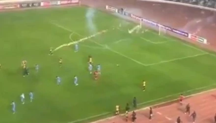 Μπορεί οι γηπεδούχοι να προηγούνταν με 3-2 και μάλιστα έχοντας σημειώσει ανατροπή παρά το αριθμητικό τους μειονέκτημα, ωστόσο οι οπαδοί τα είχαν… μαζεμένα στη διοίκηση. Γι’ αυτό και ως ένδειξη διαμαρτυρίας, κάποιοι από τους οργανωμένους που βρίσκονταν στο πέταλο, άρχισαν να πετάνε προς τον αγωνιστικό χώρο πυροτεχνήματα!