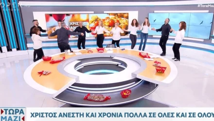 Ένα νησιώτικο πασχαλινό γλέντι έστησαν οι συντελεστές της πρωινής εκπομπής Τώρα Μαζί στο ΟΡΕΝ. Με καλεσμένες τις Σοφία και Μαρία Κιοσκέρογλου από τη Νάξο, δημοσιογράφοι και τεχνικοί τραγούδησαν και χόρεψαν αγαπημένα νησιώτικα τραγούδια, ανεβάζοντας τη διάθεση το πρωινό της Κυριακής.