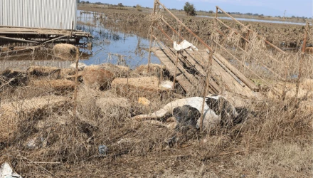 Κουφάρια ζώων επιπλέουν στα πλημμυρισμένα εδάφη, προκαλώντας τεράστια ανησυχία.