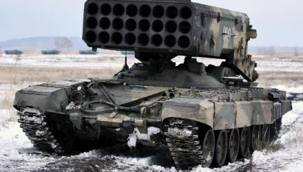 Το TOS-1 είναι ουσιαστικά ένα βαρύ σύστημα φλογοβόλου. Αυτό είναι ένα φλογοβόλο σύστημα της Ρωσικής Ομοσπονδίας, έχει διαμέτρημα 220 mm.