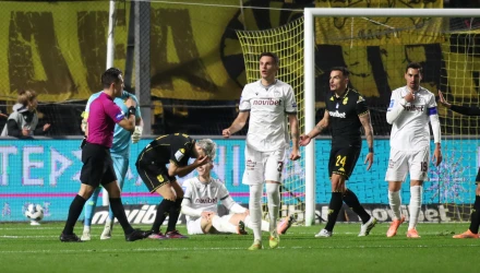 Δεύτερον -και- σημαντικότερο. Το ανύπαρκτο πέναλτι που πήρε η θεσσαλική ομάδα στο 94’ (!) αποτελεί εφεύρεση του κ. Πολυχρόνη και του κ. Κουμπαράκη, ο οποίος απορούμε τι (δεν) είδε στο VAR. Από όποια οπτική γωνία κι αν δει κανείς τη φάση θα διαπιστώσει ότι δεν υπάρχει καμία παράβαση από τον Φατιγκά στον παίκτη της φιλοξενούμενης ομάδας. Ήταν ξεκάθαρο «δώρο» του διαιτητή και το επικύρωσε αδικαιολόγητα ο κ. Κουμπαράκης.