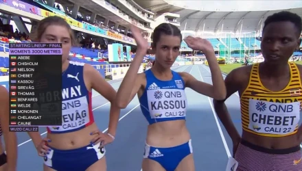 Η αθλήτρια του Σταύρου Καρρέ ήταν η 3η Ευρωπαία στον τελικό, με την Κενυάτισσα Τσελαγκάτ να παίρνει το χρυσό μετάλλιο. Η Κάσσου έκανε τρομερό ξεκίνημα στις πρώτες στροφές όπου οδηγούσε την κούρσα! Στη συνέχεια οι Κενυάτισσες πέρασαν μπροστά και η Ελληνίδα τερμάτισε 8η.