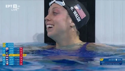 Η 21χρονη τερμάτισε σε 23.94 στον ημιτελικό των 50μ πεταλούδα και «έσπασε» το δικό της ρεκόρ από την κούρσα των προκριματικών όπου είχε κάνε 24.02. Τον δεύτερο καλύτερο χρόνο των ημιτελικών σημείωσε η Γαλλίδα, Μπερόλ Γκασταλντελό, με 24.67 και ακολούθησε η Ολλανδή, Τέσα Γκίελε με 24.68.