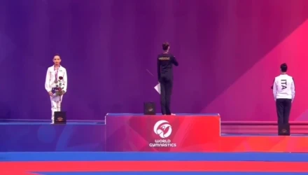 Η 15χρονη αθλήτρια κατέκτησε το αργυρό μετάλλιο στο στεφάνι, ενώ την πρώτη θέση και το χρυσό μετάλλιο κατέκτησε η Ουκρανή Ταΐσια Ονοφριϊτσούκ, πρωταθλήτρια Ευρώπης του 2025 στο σύνθετο ατομικό. Αμέσως μετά την τελετή απονομής των μεταλλίων, οι αθλήτριες κλήθηκαν να γυρίσουν 180 μοίρες για να κοιτάξουν τις σημαίες για την ανάκρουση του εθνικού ύμνου της Ουκρανίας.