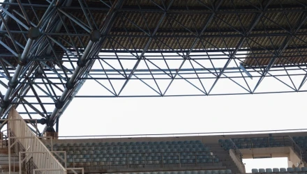 Ολοκληρώθηκαν οι εργασίες απομάκρυνσης των προβληματικών τμημάτων του ανατολικού στεγάστρου του Παγκρητίου Σταδίου, που είχε υποστεί ζημιές από την κακοκαιρία.