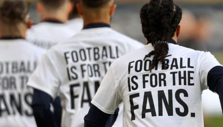 Πέρα από το μήνυμα στις φανέλες, υπήρχε και πανό στο γήπεδο: «Κερδίστε το στο γήπεδο. Το ποδόσφαιρο είναι για τους φιλάθλους»!
