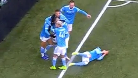 Jesús Medina was hit by an object thrown from the crowd after NYCFC scored. pic.twitter.com/n0ptX7nR1u