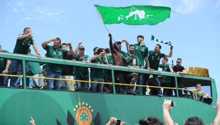 Την ίδια στιγμή, το δικό τους πάρτι έστησαν οι παίκτες του «τριφυλλιού» στο πούλμαν, στο οποίο επιβιβάστηκαν και το οποίο τους μεταφέρει στο ΟΑΚΑ για τη μεγάλη φιέστα που θα ακολουθήσει.