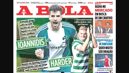 Στο πρωτοσέλιδό της (σήμερα Παρασκευή 22/8) η A Bola προτάσσει ως βασικό της θέμα τον Φώτη Ιωαννίδη με τίτλο: «Ο βασικότερος υποψήφιος για την επίθεση» σημειώνοντας παράλληλα πως «ο Έλληνας επιστρέφει στο ραντάρ των «λιονταριών», έναν χρόνο μετά».