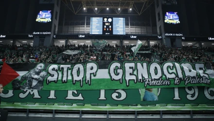 Το δικό τους ξεχωριστό μήνυμα για όσα τραγικά διαδραματίζονται στη Λωρίδα της Γάζας με τις πολεμικές επιχειρήσεις του Ισραήλ και τις χιλιάδες νεκρούς αμάχους έστειλαν οι φίλαθλοι του Παναθηναϊκού στον αγώνα με τη Μακάμπι για τη EuroLeague.