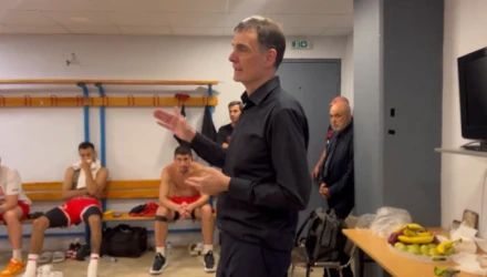 Στην πανηγυρική ομιλία προς του παίκτες του ο Γιώργος Μπαρτζώκας ζήτησε ίδια νοοτροπία και ακόμη καλύτερη εμφάνιση στο δεύτερο παιχνίδι, αύριο (7/6) στο ΣΕΦ.