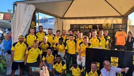 Με συνθήματα και χειροκροτήματα υποδέχθηκαν την αποστολή του Άρη στη Διεθνής Έκθεση Θεσσαλονίκης οι φίλοι της ομάδας.