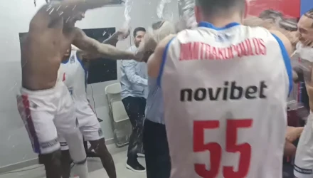 Όπως φαίνεται από το βίντεο της ομάδας από τη Νέα Σμύρνη, ο προπονητής των «κυανέρυθρων», αφού συνεχάρη τους παίκτες του για την απόδοσή τους, δέχτηκε με χαμόγελο το καθιερωμένο μπουγέλο για τη παρθενική του νίκη ως head coach στη Stoiximan GBL.