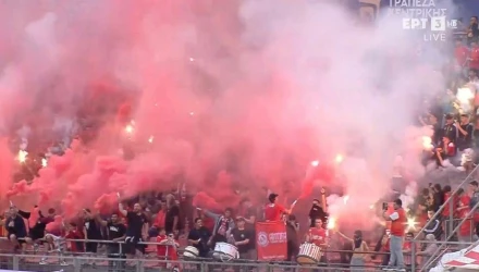 Μάλιστα, οι φίλαθλοι του Πανσερραϊκού άναψαν δεκάδες καπνογόνα κατά την είσοδο των δύο ομάδων στον αγωνιστικό χώρο, δημιουργώντας μια ωραία ατμόσφαιρα.