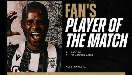 Σύμφωνα με την επίσημη ανακοίνωση της ΠΑΕ ΠΑΟΚ: «Ο Άλι Σαμάτα αναδείχθηκε Fans’ Man of the Match της αναμέτρησης κόντρα στον Asteras AKTOR στο γήπεδο της Τούμπας για την 25η αγωνιστική της Stoiximan Super League 2024-25.