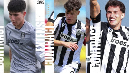 Ακόμα τρεις νεαροί άσοι του ΠΑΟΚ έγιναν επαγγελματίες υπογράφοντας τα συμβόλαια τους, σε μία φυσική εξέλιξη των πραγμάτων και της διαδικασίας εξέλιξης που ακολουθούν οι ''ασπρόμαυροι'' στις ακαδημίες τους.