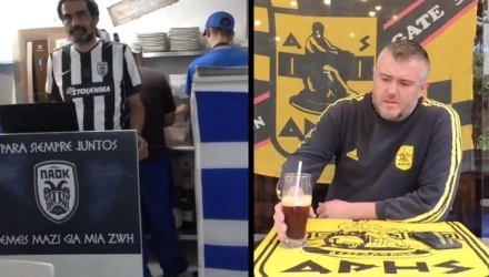 Ο δε οπαδός του Αρη ο οποίος έχει ανοίξει το δικό του σουβλατζίδικο με την επωνυμία «Σαλόνικα» δεν θα μπορούσε να μην έχει το δικό του σλόγκαν για το μαγαζί του. «Αρης θρησκεία, κιτρινόμαυρη Κολομβία», αναφέρει στην κάμερα του «Greek Reporter».