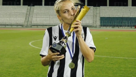 Η Ελληνίδα διεθνής μεσοεπιθετικός, γεννημένη το 1995, συνεχίζει για ακόμα μία σεζόν στα ασπρόμαυρα, ύστερα από την περσινή πετυχημένη χρονιά με την κατάκτηση του εγχώριου «νταμπλ».