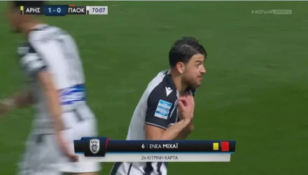 Ο Μιχάι που είδε σήμερα την κόκκινη κάρτα θα απουσιάσει από το ματς με τον Ολυμπιακό την Μεγάλη Πέμπτη (20/4), ενώ πλέον εκτός πάγκου θα είναι και ο Μπάτσι.