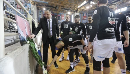 Οι παίκτες του ΠΑΟΚ με την σειρά τους αφήσαν λουλούδια δίπλα στην φωτογραφία, ενώ οι παρευρισκόμενοι στο PAOK Sports Arena, φώναζαν ρυθμικά το όνομα του.