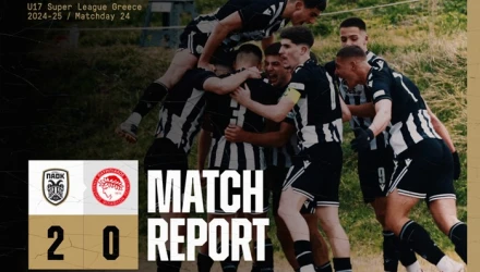 Η Κ17 του ΠΑΟΚ προηγήθηκε με τον Οικονόμου στο 36ο λεπτό. Στο 63ο λεπτό ο Σούβλατζης έκανε το 2-0 με ωραία ατομική προσπάθεια. Είχαν προηγηθεί τρία δοκάρια! Στο 13′ με τον Σούβλατζη, στο 35′ με τον Γκιόκα και στο 61′ με τον Αυγητίδη.