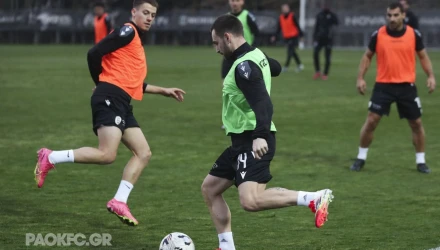 Παρουσία των διεθνών που επέστρεψαν στην Νέα Μεσημβρία και τέθηκαν στη διάθεση του προπονητή τους, συνεχίστηκε η προετοιμασία του ΠΑΟΚ για τον κυριακάτικο αγώνα με την ΑΕΚ.