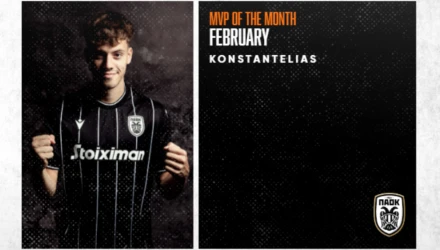 Ο Γιάννης Κωνσταντέλιας κατέπληξε για ακόμη ένα μήνα τα ποδοσφαιρικά πλήθη, εντός και εκτός συνόρων, μια άποψη που φαίνεται πως ασπάζονται καθολικά και οι ασπρόμαυροι οπαδοί, αφού τον ανέδειξαν ως τον πολυτιμότερο παίκτη για τον μήνα Φεβρουάριο.
