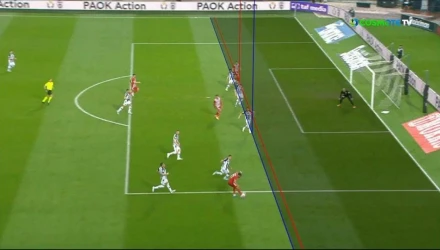 Στο 10ο λεπτό της αναμέτρησης του ΠΑΟΚ με τον Ολυμπιακό ο Μασούρας άνοιξε το σκορ για τους «ερυθρόλευκους», μετά από σέντρα του Γκάρι Ροντρίγκες από τα δεξιά, αλλά το τέρμα των φιλοξενούμενων ακυρώθηκε, σωστά, ως οφσάιντ.
