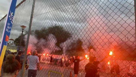 Φίλαθλοι του Δικεφάλου, κάθε ηλικίας, βρέθηκαν από νωρίς στον χώρο και υποδέχθηκαν τους παίκτες και τον Μάσιμο Καντσελιέρι, με συνθήματα και πυρσούς.