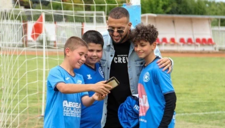 Ευκαιρία δεν έχασαν ούτε τα οι νεαροί ποδοσφαιριστές, που φυσικά ζήτησαν από μια φωτογραφία. Ο ίδιος ευγενέστατος, δεν τους χάλασε χατίρι και μοίρασε ατελείωτα χαμόγελα και αναμνήσεις.